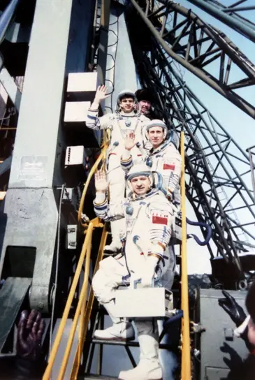 8 февраля 1984 год. Экипаж «Союз Т-10»: О.Атьков, Л. Кизим, В.Соловьев на старте