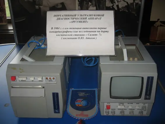Первый отечественный портативный ультразвуковой диагностический аппарат «Аргумент», разработанный с участием сотрудников ВКНЦ АМН СССР (представлен в выставочном комплексе НМИЦ кардиологии им. ак. Е.И.Чазова Минздрава России)